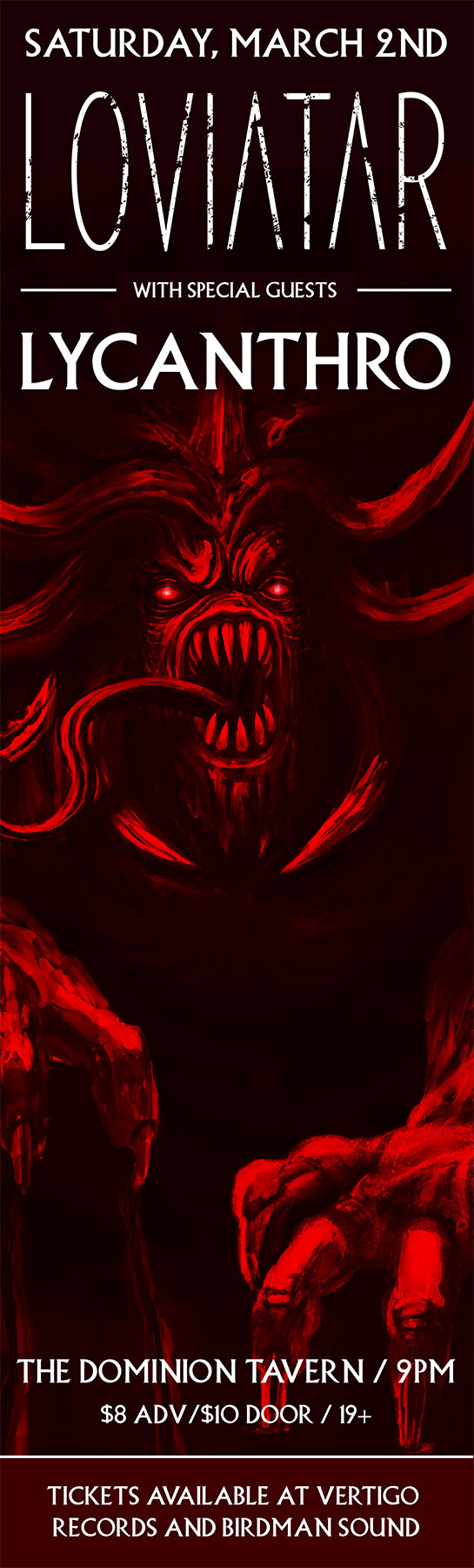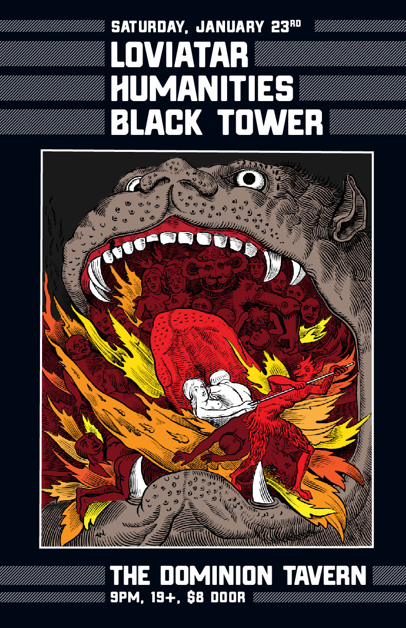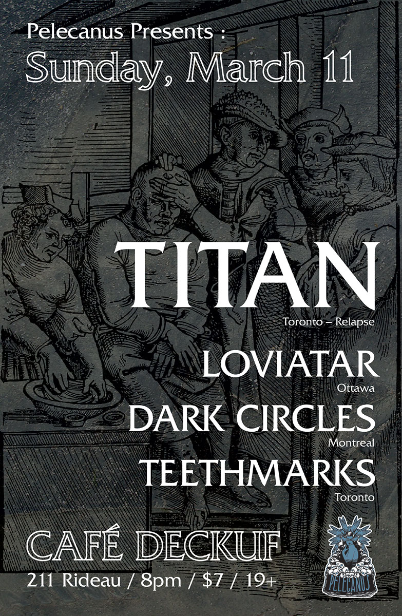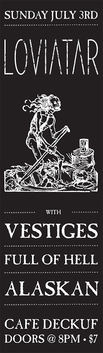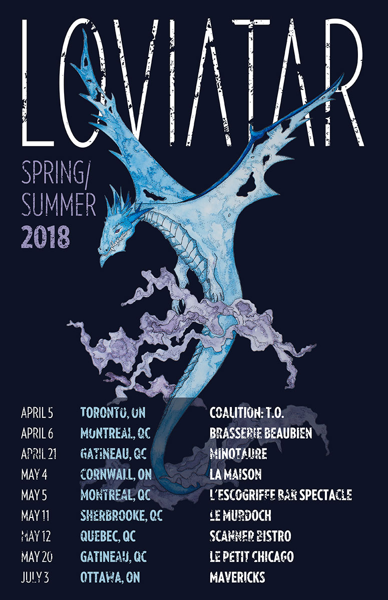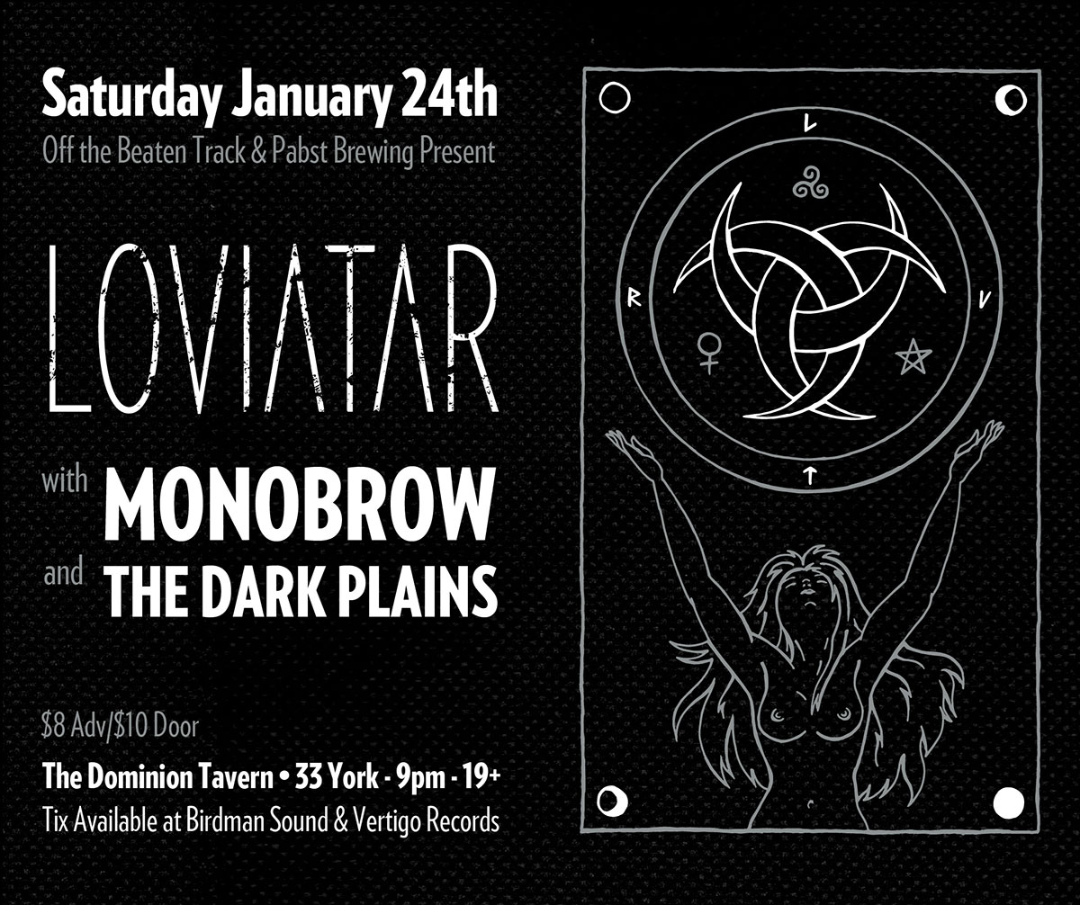 Recorded by their bass player, Mike Bond at Wolf Lake Studios - the recording facility he co-owns with drummer, JP - in the forest of Lac-des-Loups, Quebec, Loviatar had the space to experiment and reshape as they went. With no time constraints or outside pressures, the pieces fell into place at their own pace. Mixing and mastering was also handled by Mike to put the finishing touches to this overcast missive. The artwork for Lightless is a painting by Swiss artist, Lesley Oldaker. The evocative image is multilayered; the longer you look, the more you see - a dark path strewn with bodies leads the way toward the light. It’s the perfect visual accompaniment for an album that revels in oblique darkness as much as Lightless does.